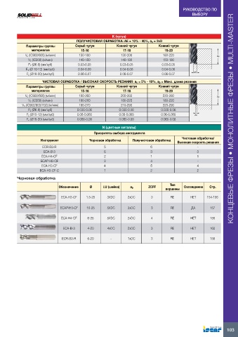 Fz (Ø16-20) (мм/зуб) 0.065-0.08 0.065-0.08 0.065-0.08 КОНЦЕВЫЕ ФРЕЗЫ • МОНОЛИТНЫЕ ФРЕЗЫ • MULTI-MASTER