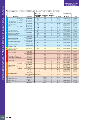 ISO Материал Состояние [Н/мм2] HB (1) vc м/мин Fz мм/зуб fz нач.
