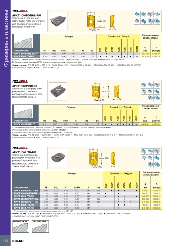 •  APKT...L используются только на левосторонних фрезах. • Руководство по эксплуатации и режимы резания см. стр. 542-547