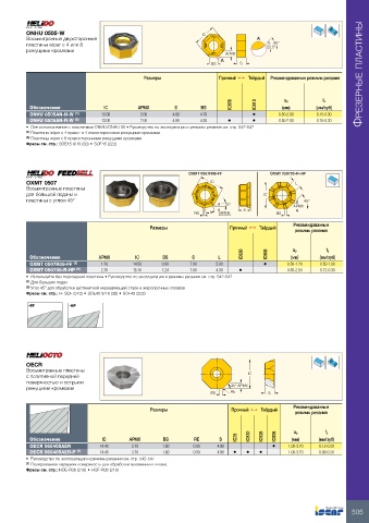 •  Для использования с пластинами ONMU/ONHU 05 • Руководство по эксплуатации и режимы резания см. стр. 542-547