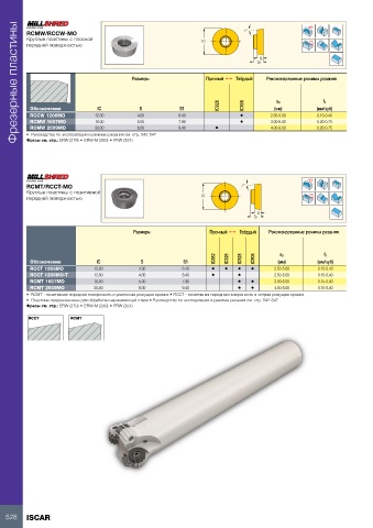 •  RCMT - позитивная передняя поверхность и усиленная режущая кромка • RCCT - позитивная передняя поверхность и острая режущая кромка