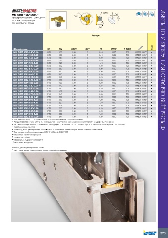 MM GRIT 16K-2.50-0.20  15.70    2.50     2.80       3       0.20      16.00     T06   MM EGR 16-18*  •     ФРЕЗЫ ДЛЯ ОБРАБОТКИ ПАЗОВ И ОТРЕЗКИ