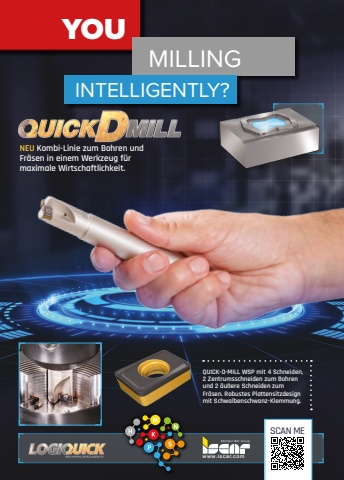 9NEU Kombi-Linie zum Bohren undFr%u00e4sen in einem Werkzeug f%u00fcrmaximale Wirtschaftlichkeit.www.isca r.comYOUMILLINGSCAN MEQUICK-D-MILL WSP mit 4 Schneiden,2 Zentrumsschneiden zum Bohrenund 2 %u00e4u%u00dfere Schneiden zumFr%u00e4sen. Robustes Plattensitzdesignmit Schwalbenschwanz-Klemmung.INTELLIGENTLY?