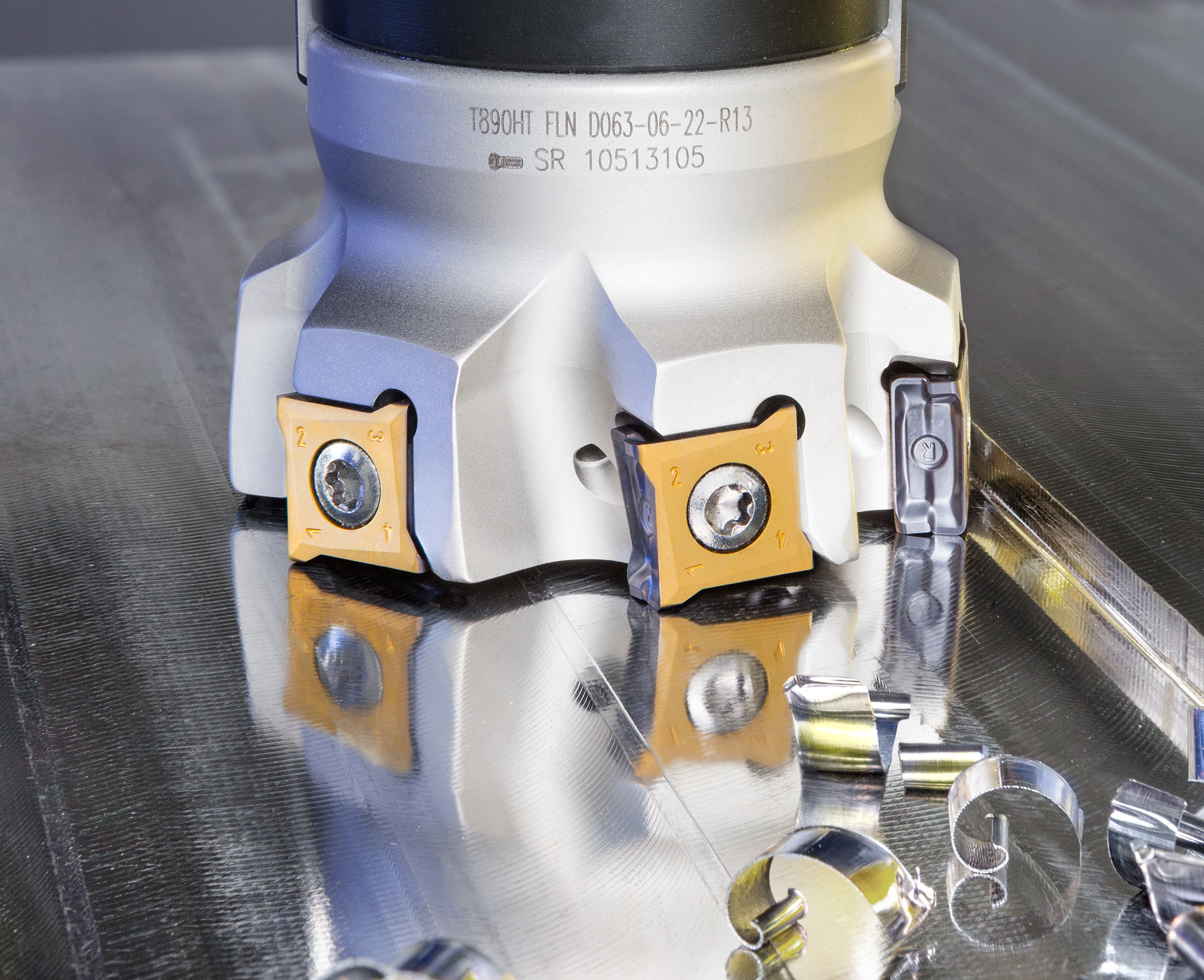 伊斯卡推出全新铣刀,立装夹持带8个右手切削刃的刀片,推荐用于面铣及方肩铣加工。新T890HT铣刀具有90°主偏角及高刚性夹持机构的特点。冷却液流经内冷却通孔直达每一切削刃,铣刀体经特别的硬涂层抛光处理保护,具有更高的耐腐蚀性及耐磨损性。广泛适用于不同种类的钢件、不锈钢件、铸铁件等各类工件材料的加工;设计用于汽车工业、模具工业及通用机加工领域的粗铣及精铣加工。