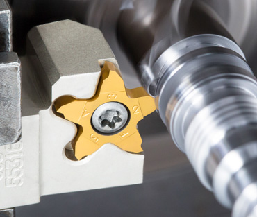 外接圆直径17 mm的刀片PENTACUT-17设计应用于小零件工业,加工小规格零部件,最大切槽深度为 4 mm。新刀片切宽范围为 0.25-3.18 mm,带不同的切削刃形状用于切断、切槽、车削及螺纹加工。刀杆PCHRS/LS-17夹持带5个切削刃的刀片用于高精度的切槽、切断以及台肩槽的精整加工。刀片具有高重复定位精度,能从刀杆两侧对刀片进行转位操作,短小的刀杆头部设计使得其更适配于小型机床,具有非常高的刚性及高精度夹持。